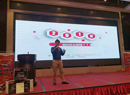 道可視廣東代理、廣州御卡汽車用品有限公司總經(jīng)理陳彥豪先生在會(huì)議中,帶來了“2019年,我們怎么掙錢?”的主題宣講。他表示360°全景行車輔助系統(tǒng)已經(jīng)成為了汽車后裝電子行業(yè)的發(fā)展趨勢,且安裝車型幾乎覆蓋所有車型,市場潛力巨大。